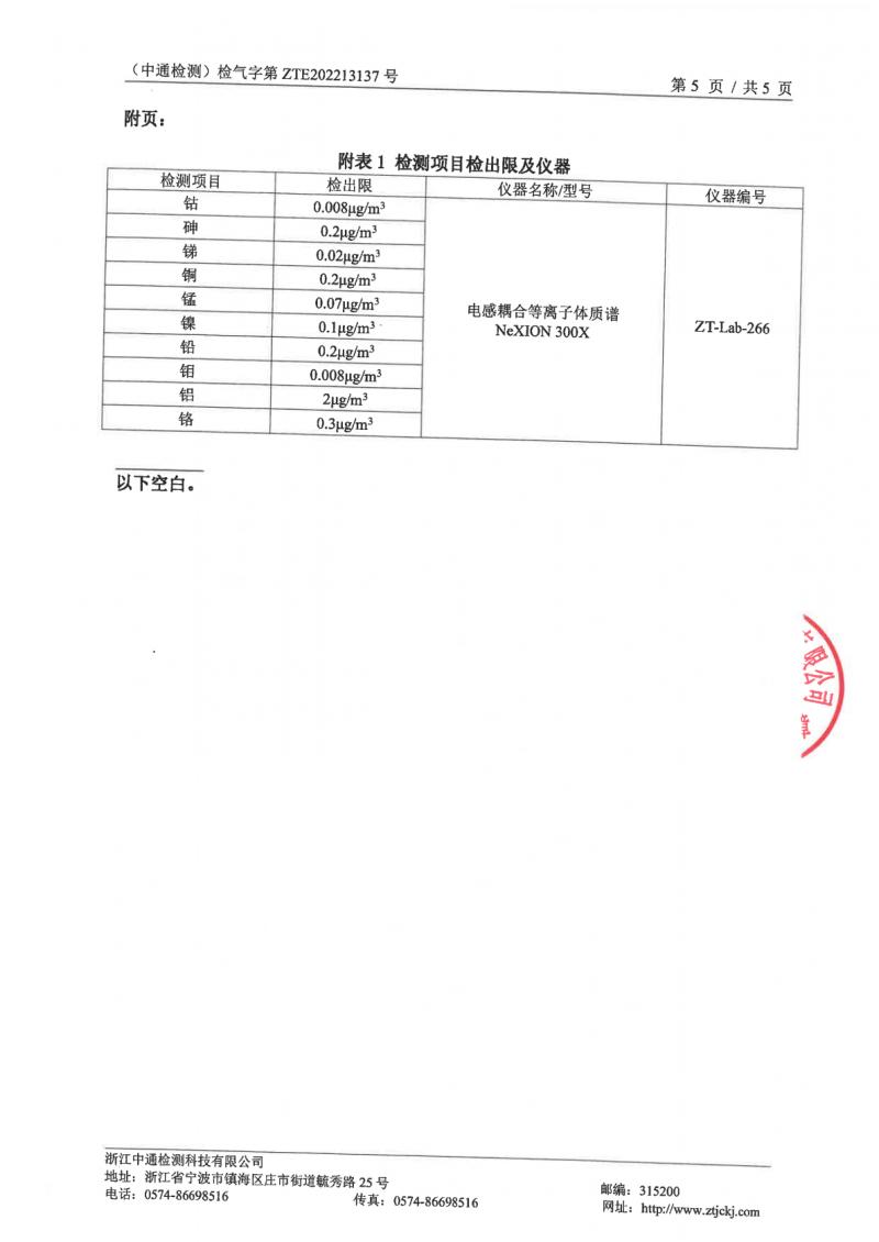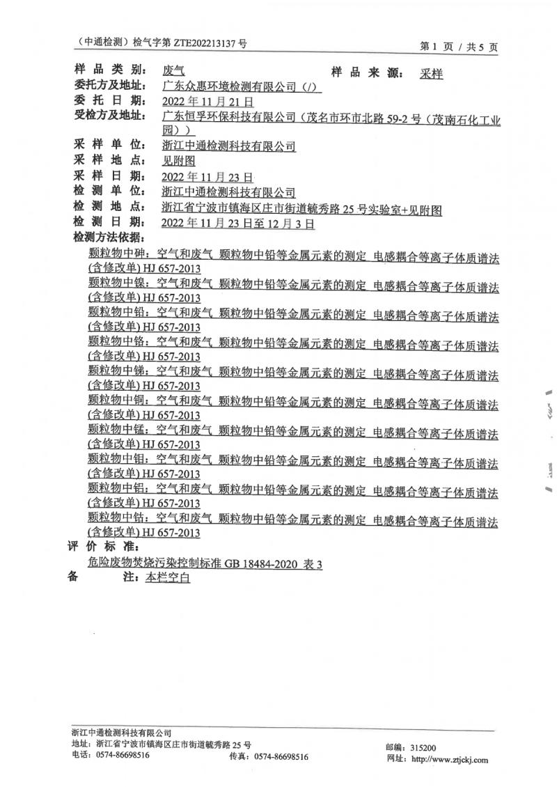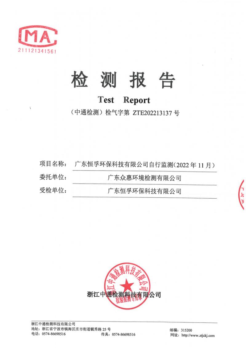 (恒孚)22年12月廢氣檢測報(bào)告ZTE202213137