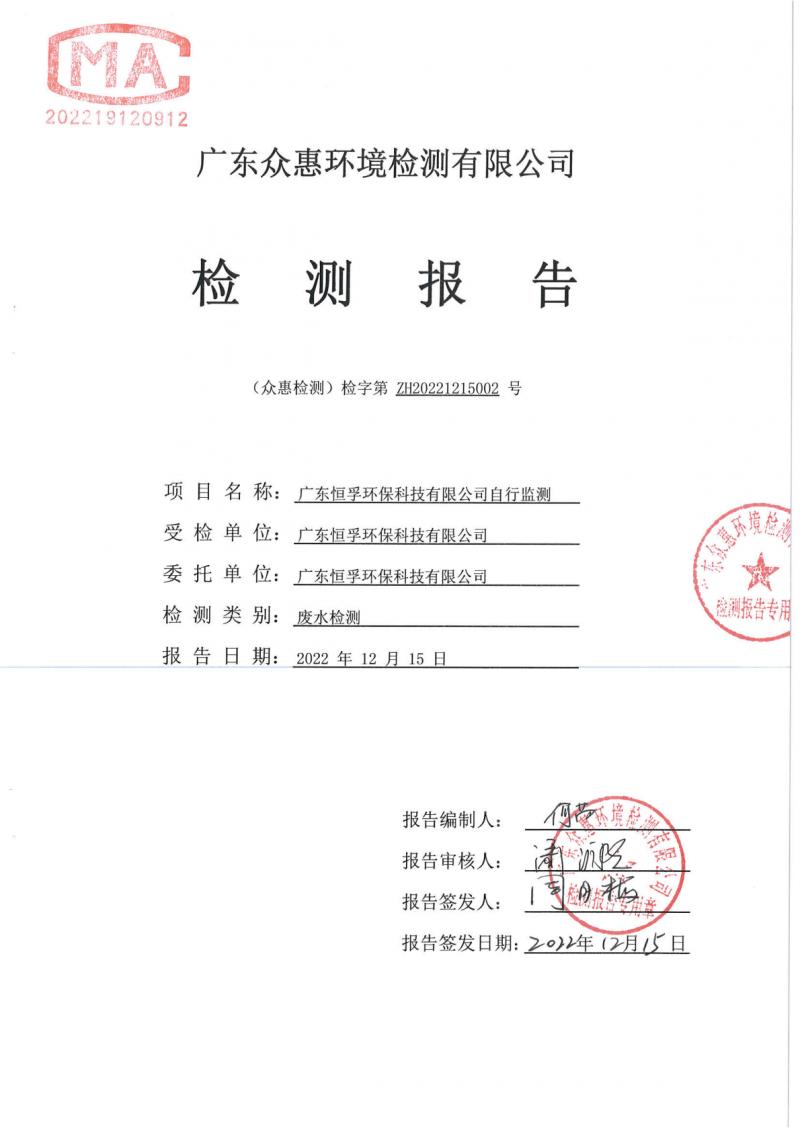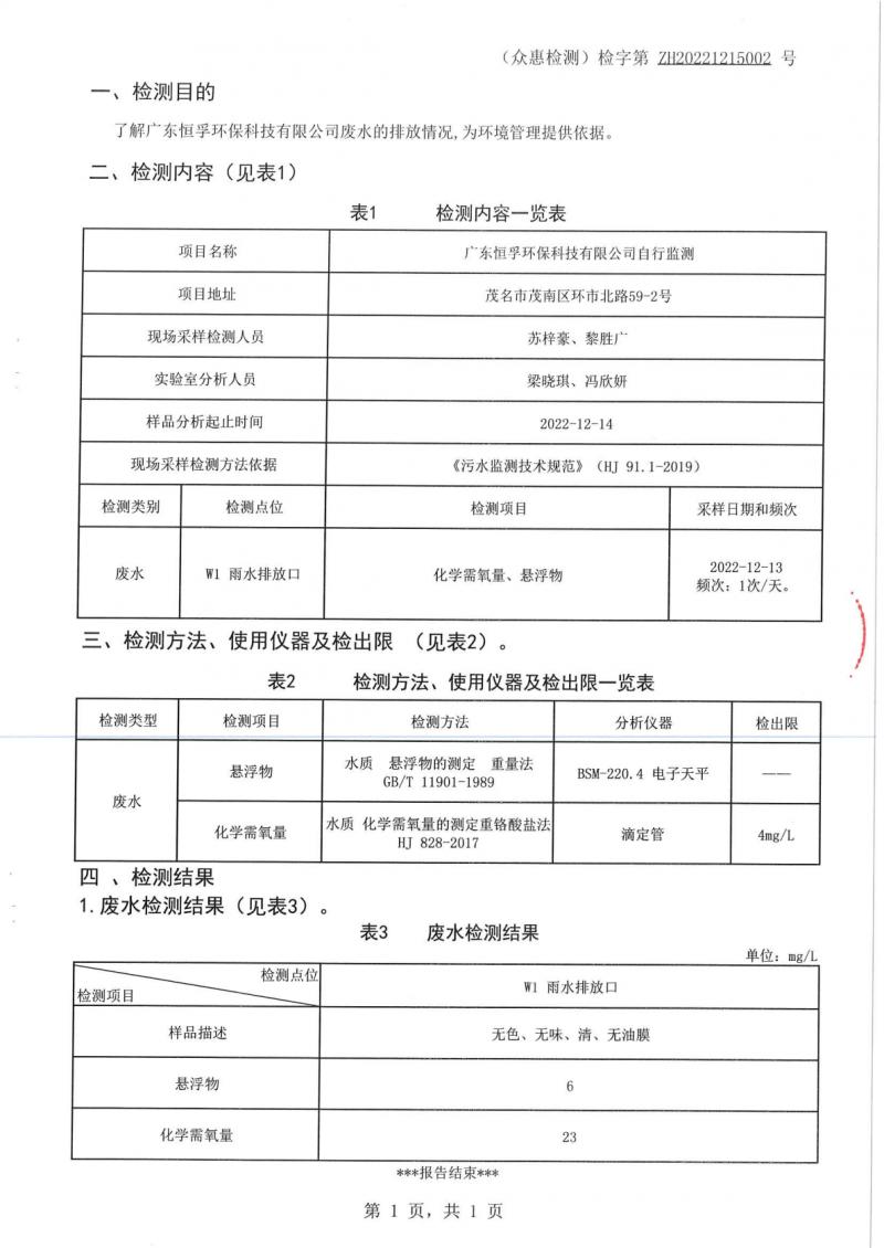 (恒孚)22年12月雨水檢測(cè)報(bào)告ZH20221215002